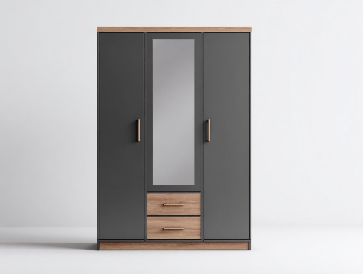 Cette armoire est conçue pour un usage en chambre et offre une solution de rangement pratique et équilibrée. Son miroir central intégré facilite la préparation quotidienne, tandis que la structure verticale optimise l'organisation de l'espace sans encombrer la pièce.